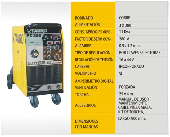RANGO CORRIENTE SOLDADURA 50 – 315 A (13.5 – 30 V)